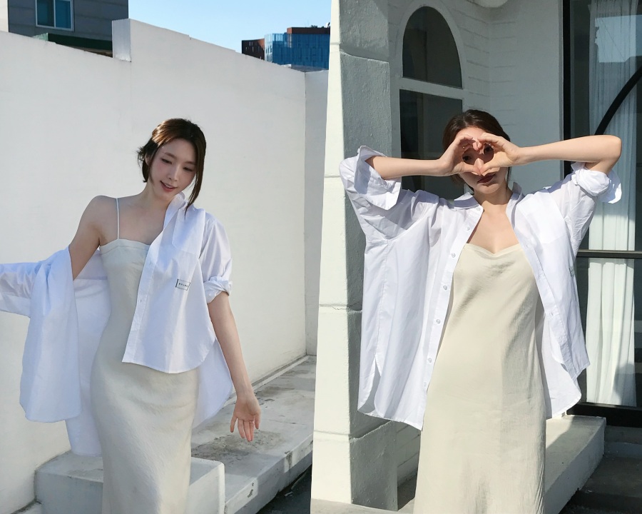 공개된 사진 속 성해은은 아이보리 컬러의 슬립 원피스에 화이트 셔츠를 가볍게 걸친 채 청순한 무드를 완성했다. 얇은 스트랩이 드러낸 어깨 라인과 자연스럽게 묶은 헤어가 더해지며 특유의 여리여리한 분위기가 극대화된다.