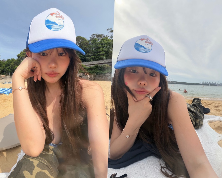 공개된 사진 속 홍영기는 블루 스트라이프 비키니에 화이트 캡을 매치한 캐주얼한 스타일로 등장했다. 특히 눈길을 끄는 건 자연광 아래 더욱 도드라지는 또렷한 이목구비와 러블리한 분위기. 양 볼에 더해진 별 스티커와 내추럴한 헤어는 특유의 ‘동안 매력’을 배가시키고, 깊게 파인 비키니 실루엣은 글래머러스한 볼륨감을 강조하며 상반된 매력을 동시에 완성했다.