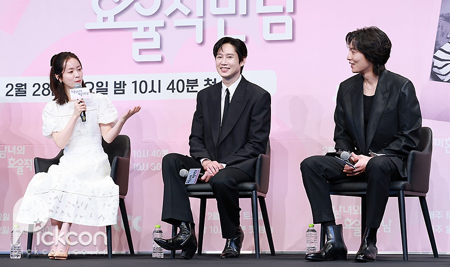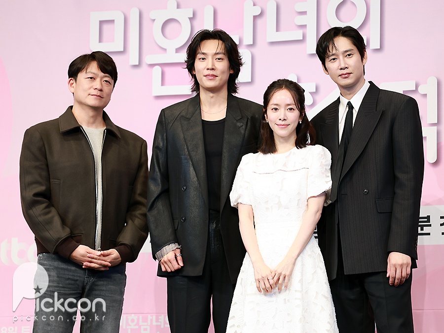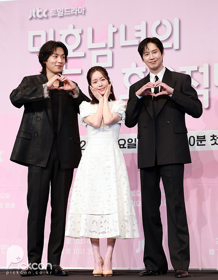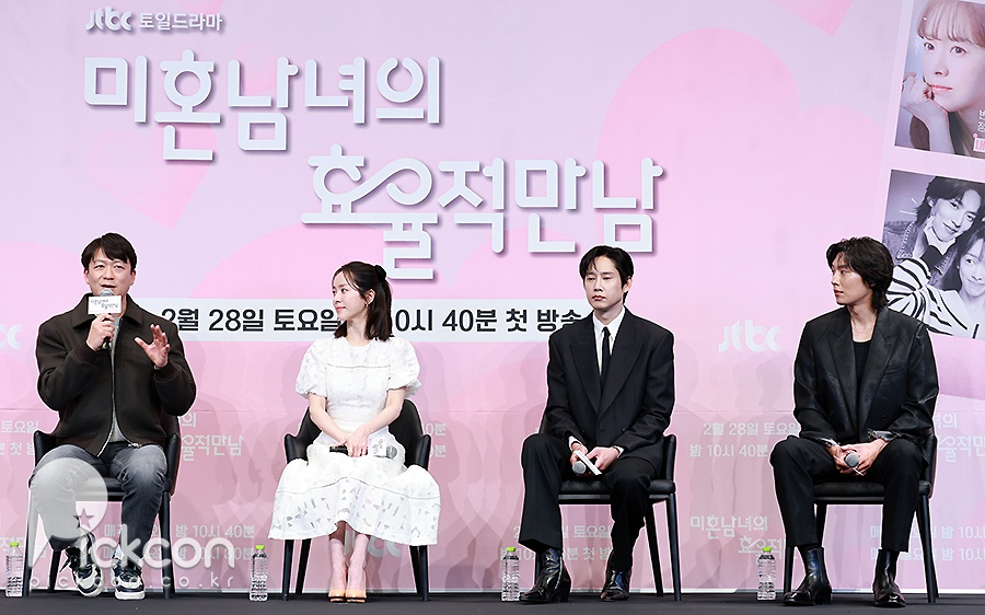 26일 서울 구로구 더 링크호텔 링크홀에서는 JTBC 새 토일드라마 '미혼남녀의 효율적 만남'(극본 이이진, 연출 이재훈) 제작발표회가 열려 연출을 맡은 이재훈 감독과 배우 한지민, 박성훈, 이기택이 참석했다.