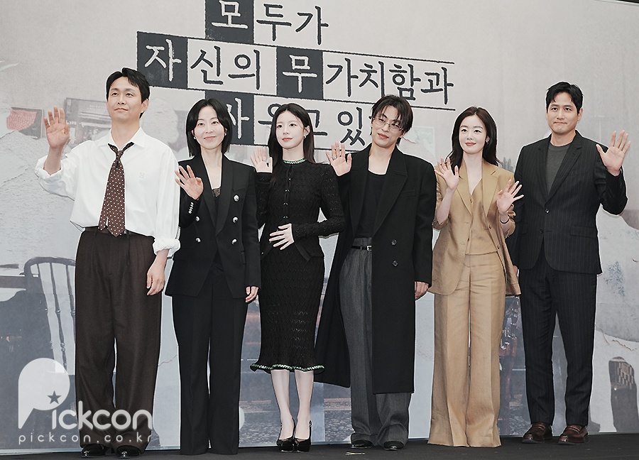 17일 서울 마포구 스탠포드호텔 그랜드볼룸에서는 JTBC 새 토일드라마 '모두가 자신의 무가치함과 싸우고 있다'(극본 박해영, 연출 차영훈)(이하 '모자무싸') 제작발표회가 열려 연출을 맡은 차영훈 감독과 배우 구교환, 고윤정, 오정세, 강말금, 박해준, 한선화가 참석했다.