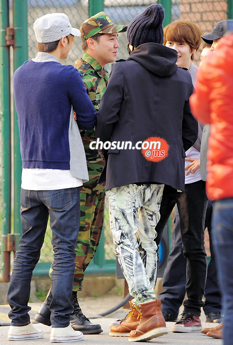 이날 강인 제대 인터뷰현장에는 슈퍼주니어 멤버 이특, 은혁, 동해, 려욱, 규현, 성민이 함께해 눈길을 끌었다.