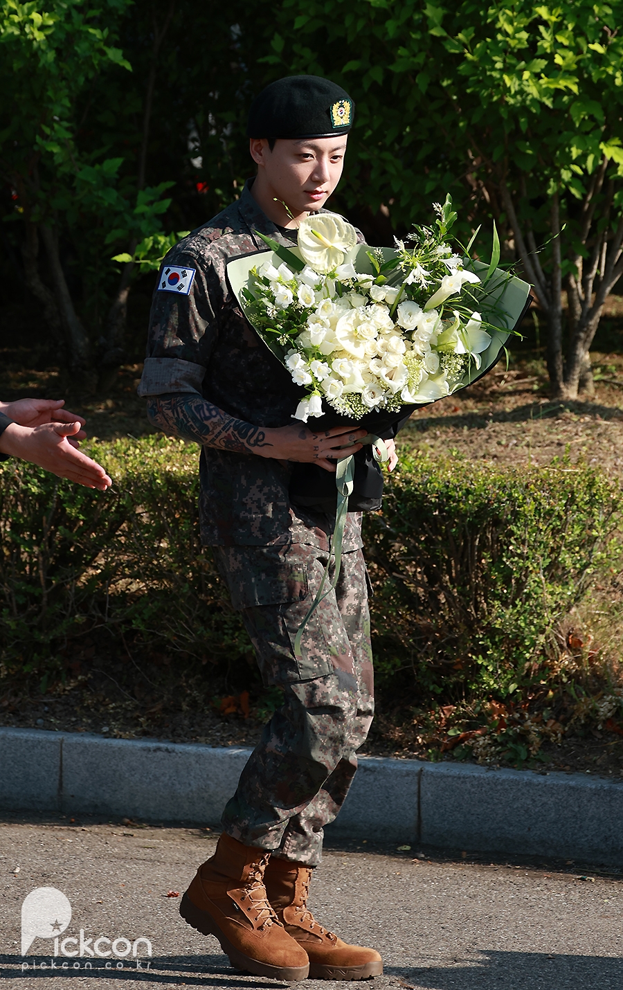 11일 경기도 연천국 연천공설운동장에서는 지민과 정국의 전역식이 진행됐다. 지민과 정국은 동반 입대 후 경기 연천군 제5보병사단 포병여단에서 복무를 마쳤다.