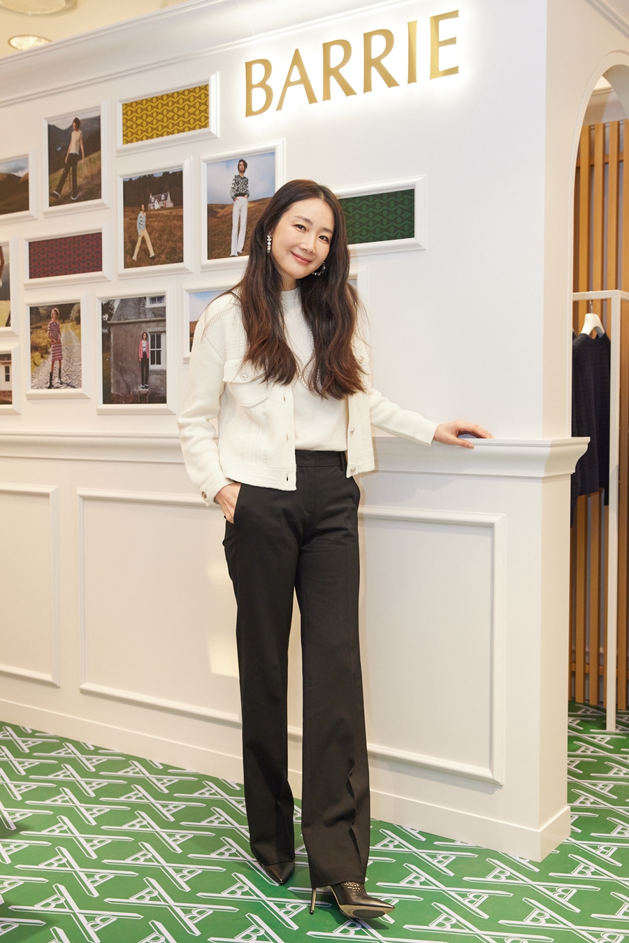 이날 팝업 스토어 오픈을 축하하기 위해 현장을 찾은 최지우는 깨끗하고 우아한 이미지에 어울리는 배리의 화이트 캐시미어 재킷을 착용해 변함없는 아름다움으로 눈길을 끌었다.