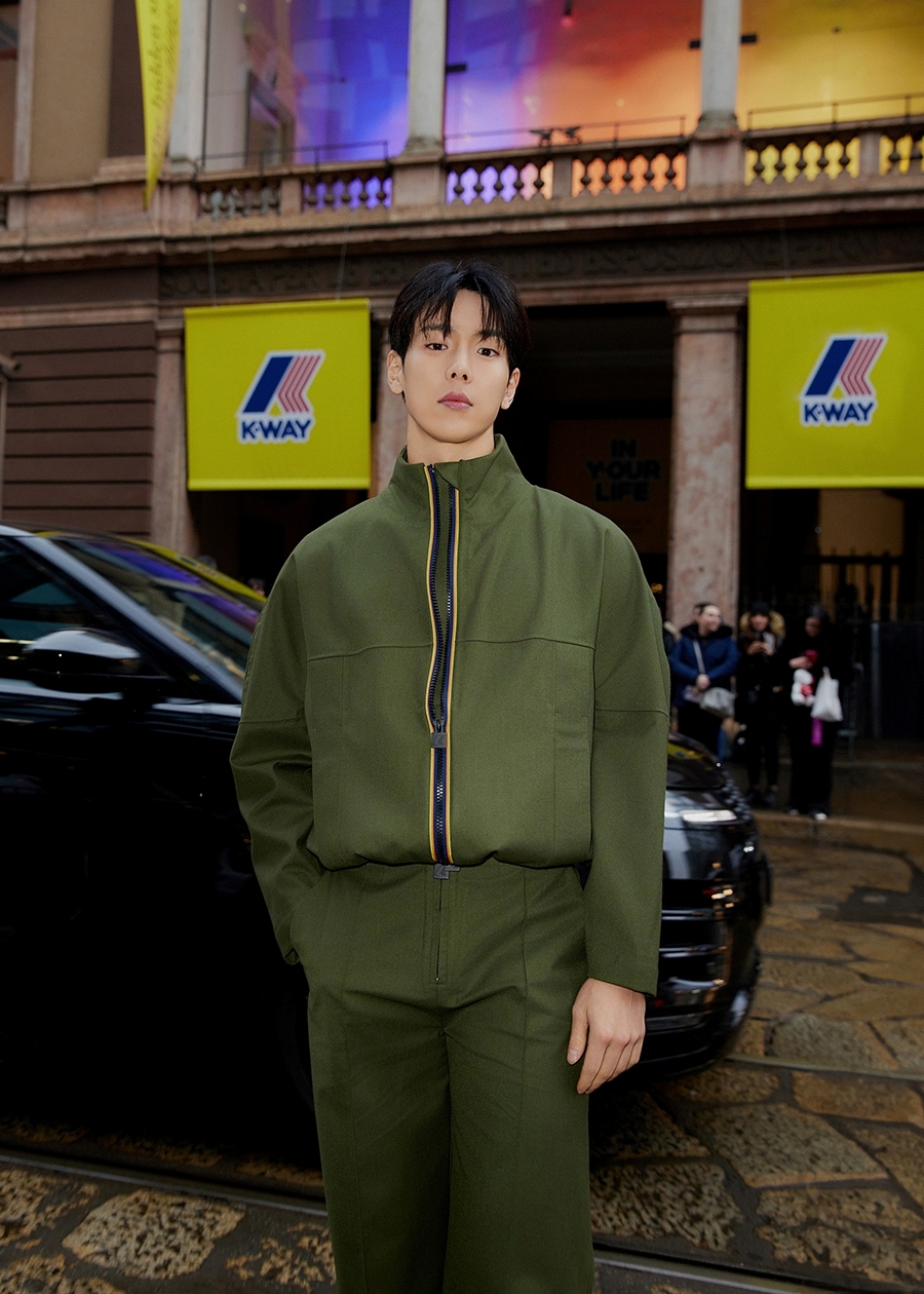 셔누는 지난 25일(현지시간) 이탈리아 밀라노 뮤제오 델라 페르마넨테(Museo della Permanente)에서 열린 프랑스 프리미엄 브랜드 까웨(K-WAY)의 R&D 2025 컬렉션 쇼 런웨이에 올랐다.