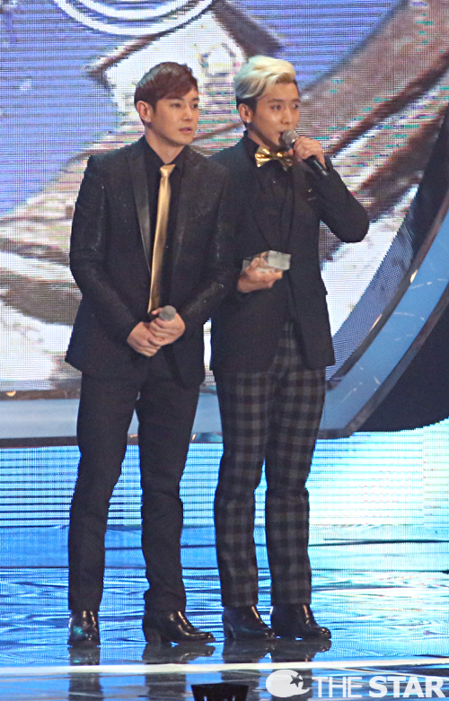 13일 오후 서울 송파구 올림픽공원 체조경기장에서 열린 '2014 멜론 뮤직 어워드(MelOn Music Awards 2014)'에서 알앤비소울상을 수상한 플라이투더스카이가 소감을 말하고 있다.