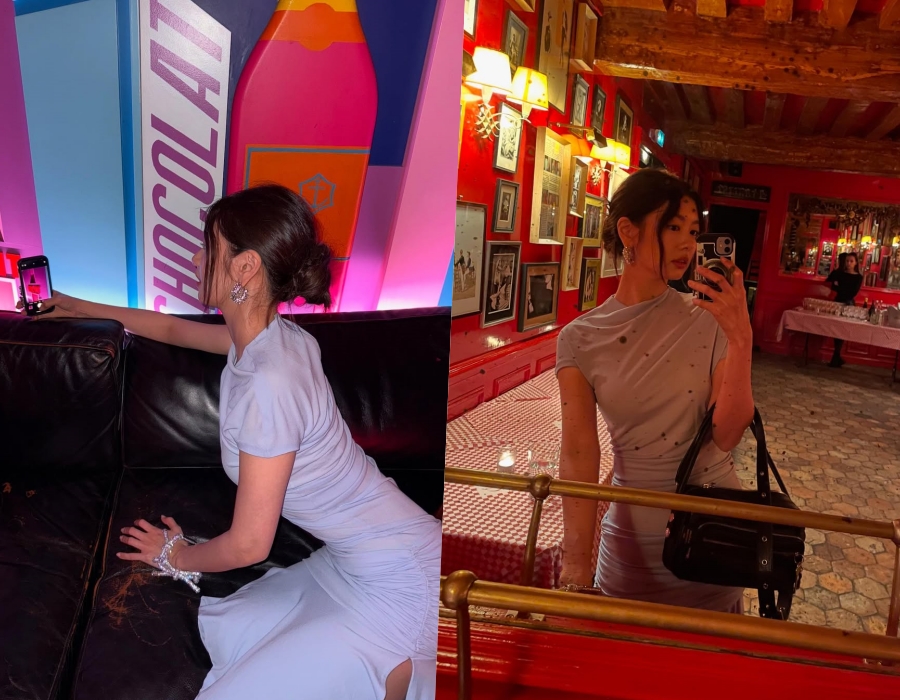 공개된 사진 속 정소민은 옅은 그레이톤의 드레스를 입고 디너를 즐기는 모습이다. 그는 글로벌 패션 브랜드를 언급하며 현장에 참석했다. 그의 드레스는 아름다운 보디라인을 부각시키며 감탄을 더한다.