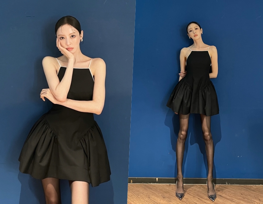 머리를 깔끔하게 넘긴 스타일로 연출한 이다희는 블랙 색상의 미니 원피스와 시스루 스타킹을 매치해 고혹적인 분위기를 완성했다. 특히 그는 짧은 기장의 원피스에 극세사 각선미를 뽐낸 것은 물론, 킬힐을 신고 놀라운 비율을 자랑해 감탄을 자아냈다.